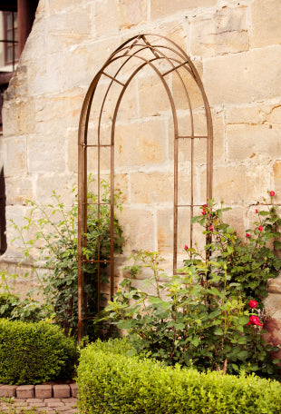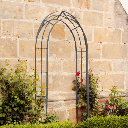 Puoi posizionare un arco per rampicanti in ferro da solo nel letto o usarlo come un imponente ingresso al tuo giardino. Ricoperto di profumate rose rampicanti, accoglie i tuoi visitatori con stile ed è una vera festa per gli occhi.