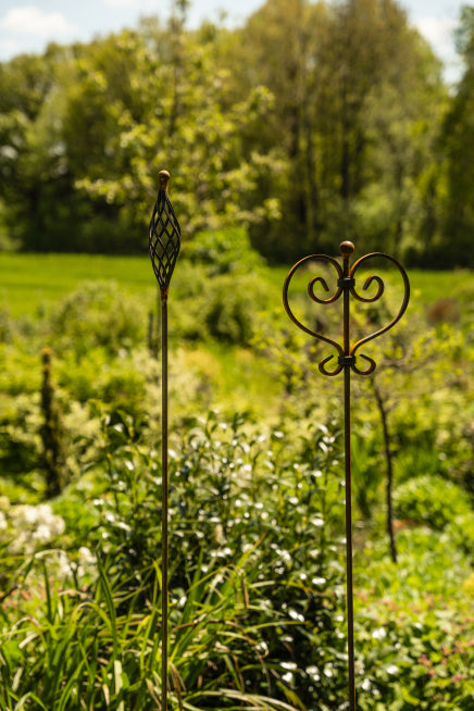Puoi incorporare decorazioni da giardino con patina patinata nel design del tuo giardino in vari modi, utilizzandole per evidenziare e creare struttura. Le decorazioni da giardino color ruggine stanno particolarmente bene in vasi, fioriere e aiuole. Qui l'aspetto ruggine crea un contrasto armonioso con la varietà di colori delle piante da fiore. Ad esempio, posiziona dei spine da giardino arrugginiti nel tuo letto di piante perenni o lascia che le tue piante rampicanti preferite crescano un supporti per rampicanti arrugginito.