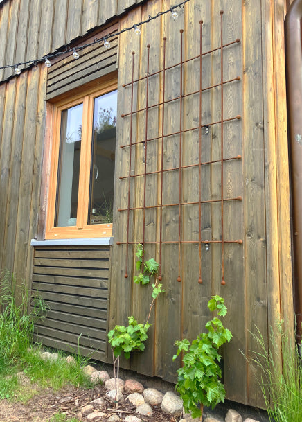 Un traliccio è un metodo molto comune per sostenere e guidare le viti. I modelli con elementi orizzontali o aste sono i più adatti a questo scopo, come il nostro traliccio Tarent , che puoi semplicemente montare orizzontalmente sulla parete e utilizzare come traliccio per le viti.