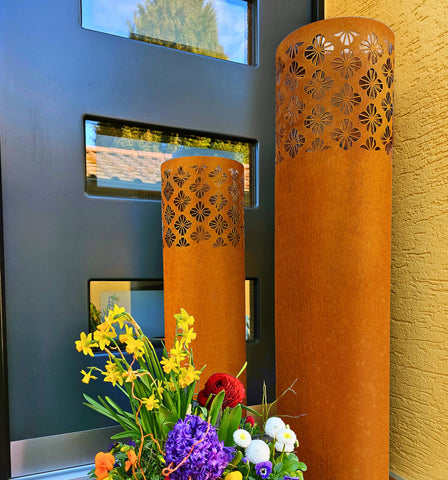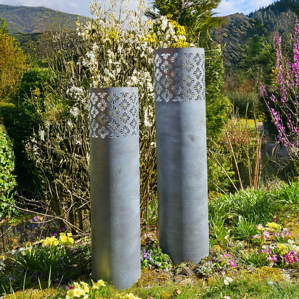 Questo set esclusivo include due eleganti colonne portacandele che catturano immediatamente l'attenzione con il loro design floreale. Grazie all'inserto in vetro integrato, la soffusa luce delle candele viene messa in scena in modo sicuro e suggestivo. Che si tratti di un'illuminazione romantica o di un'elegante decorazione, queste colonne portacandele aggiungono quel tocco speciale al vostro spazio esterno.