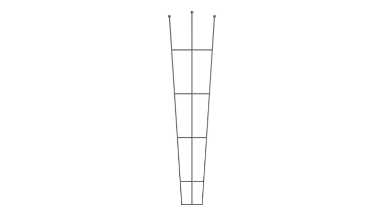 Semplice eleganza per le vostre piante rampicanti: Il nostro traliccio trapezoidale “Bari” colpisce per il suo design senza tempo che si adatta a qualsiasi giardino e balcone. Le tre punte sferiche sono un particolare richiamo visivo. L'altezza complessiva è di 170 cm e la larghezza di 42 cm.